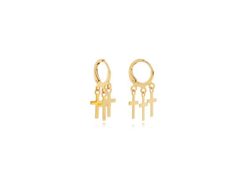 Brinco Argola Com Cruz Folheado Em Ouro 18K