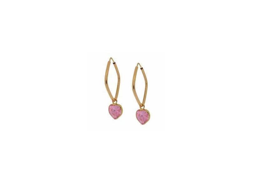 Brinco Argola Com Pingente Coração 8mm De Ouro 18k