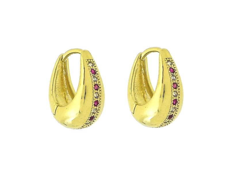 Brinco Argola com Zircônias Rosa e Branco Folheado a Ouro 18K