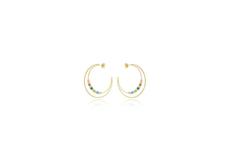 Brinco Argola de Pérolas com Cristais Coloridos em Ouro 18K