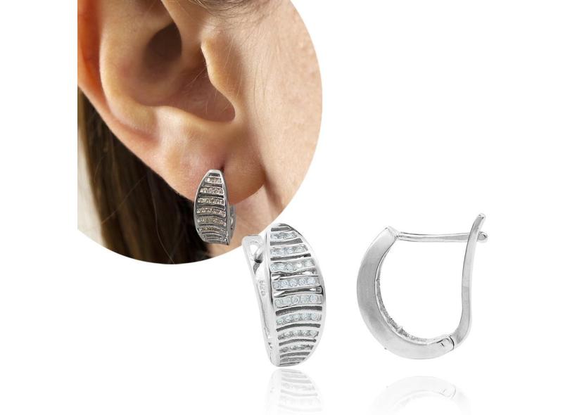 Brinco Argola De Prata 925 Grande Cravejado Com Zircônias
