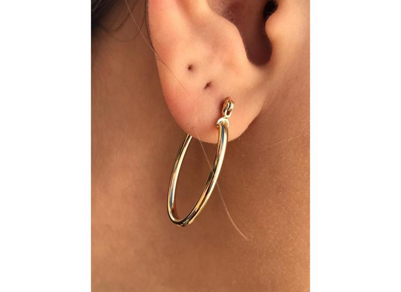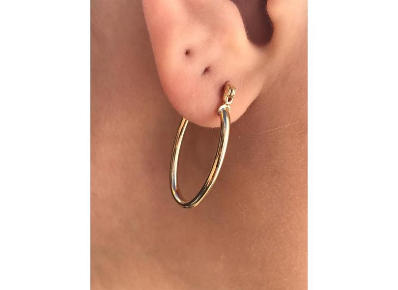 Brinco Argola Oval Moderna Media Delicada Folheada em Ouro