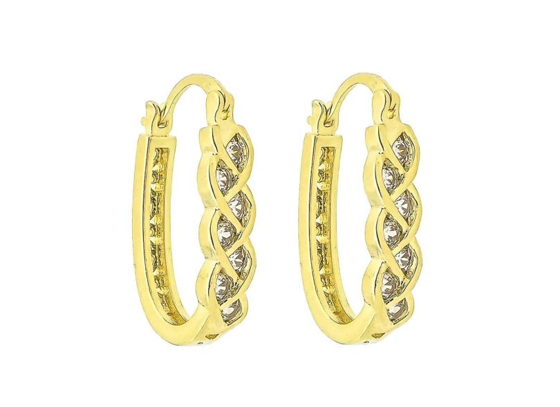 Brinco Argola Trançada com Zircônias Brancas Folheado a Ouro 18K