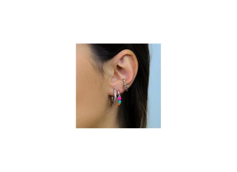 Brinco Argola Três Corações Coloridos Banhado Ródio Branco