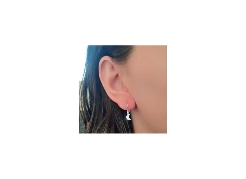 Brinco Argolinha Encaixe Lua Coração Folheado a Prata