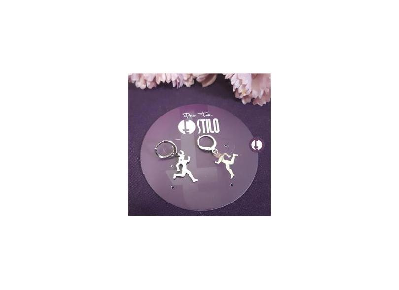 Brinco Banhado A Ródio De Argola Com Pingente De Corredora