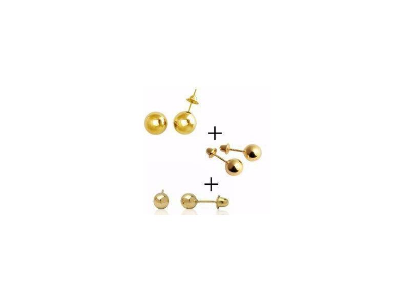 Brinco Bola 5mm 4mm 3mm Joia Ouro 18k 750