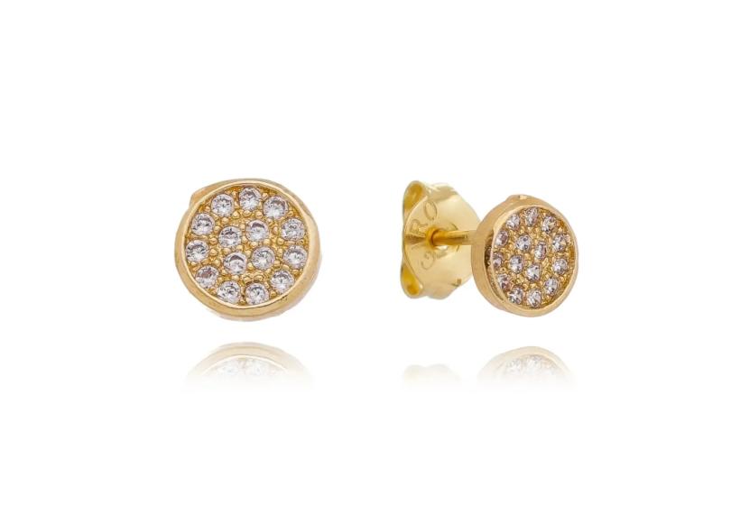 Brinco Botão Cravejado Em Zircônias P Folheado Em Ouro 18K