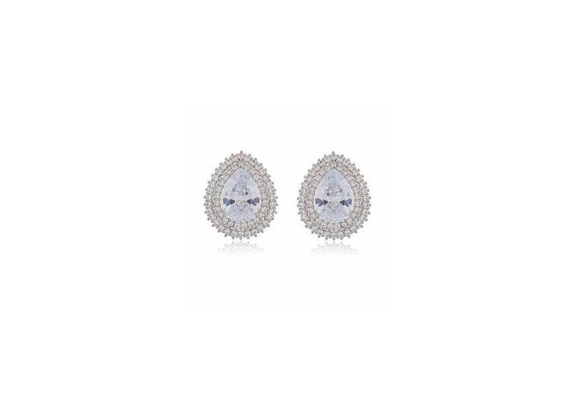 Brinco Brunele Oval Cristal Central Cravejado em Cristais