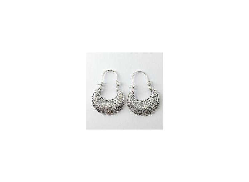 Brinco Cesta Flor Vazado Em Prata - Id 4803