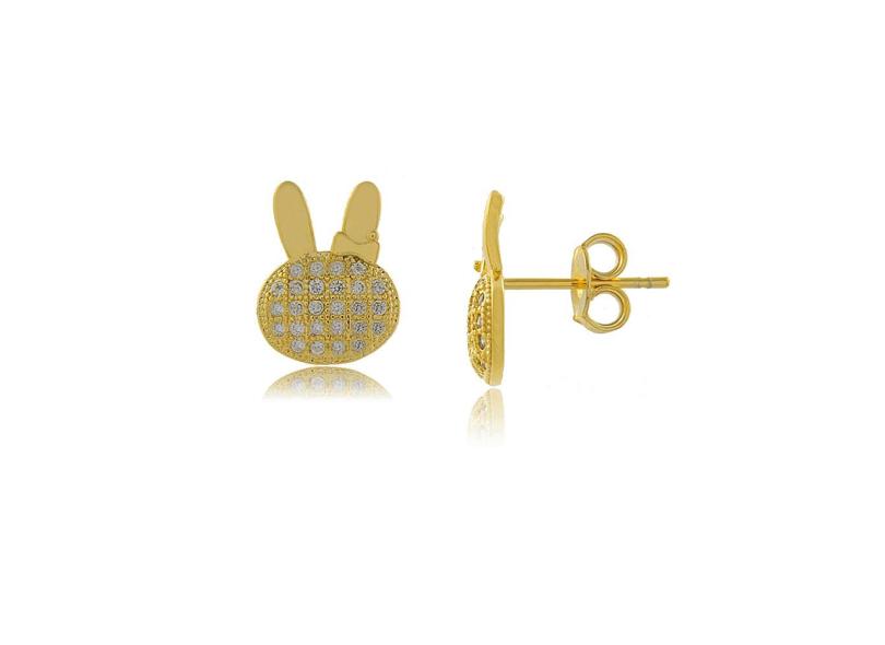 Brinco Coelhinha com Zircônias Folheado a Ouro 18K