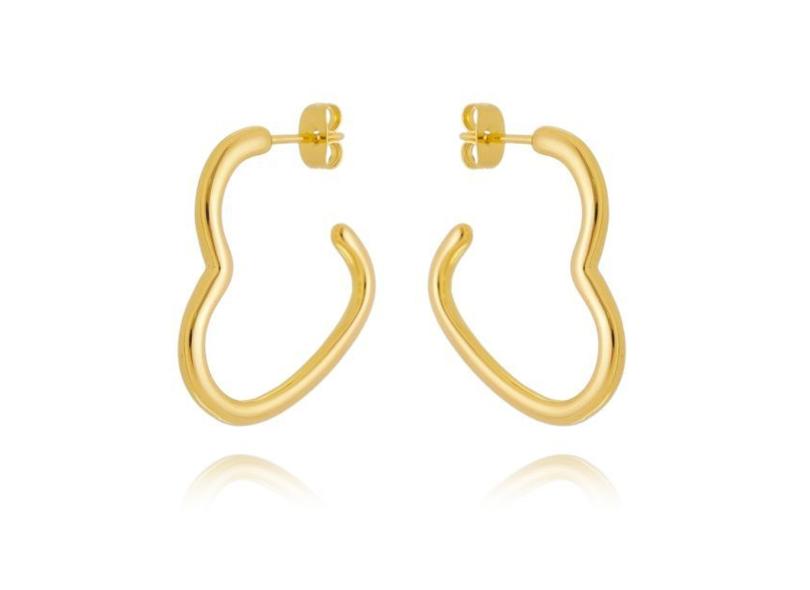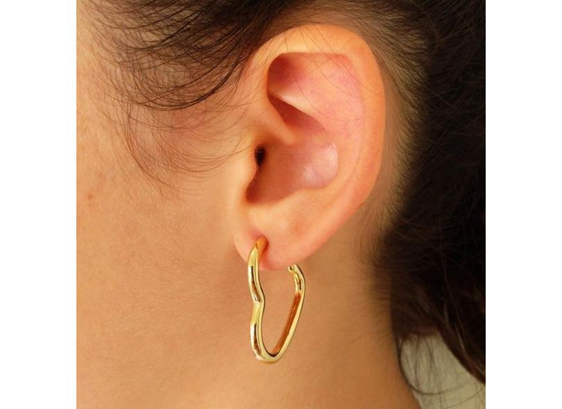 Brinco de Argola em Fio Coração Banhada a Ouro 22K