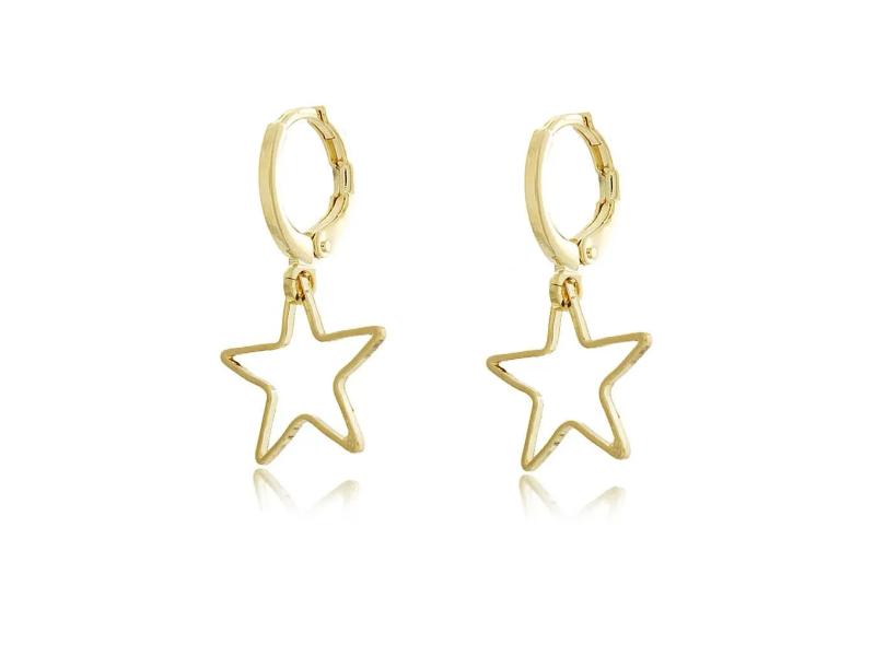 Brinco De Argolinha Fechada Com Pingente De Estrela Vazada Em Banho De Ouro 18k