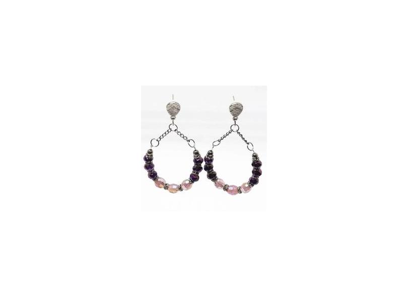 Brinco de Cristais Roxo e Rosa c/ Strass