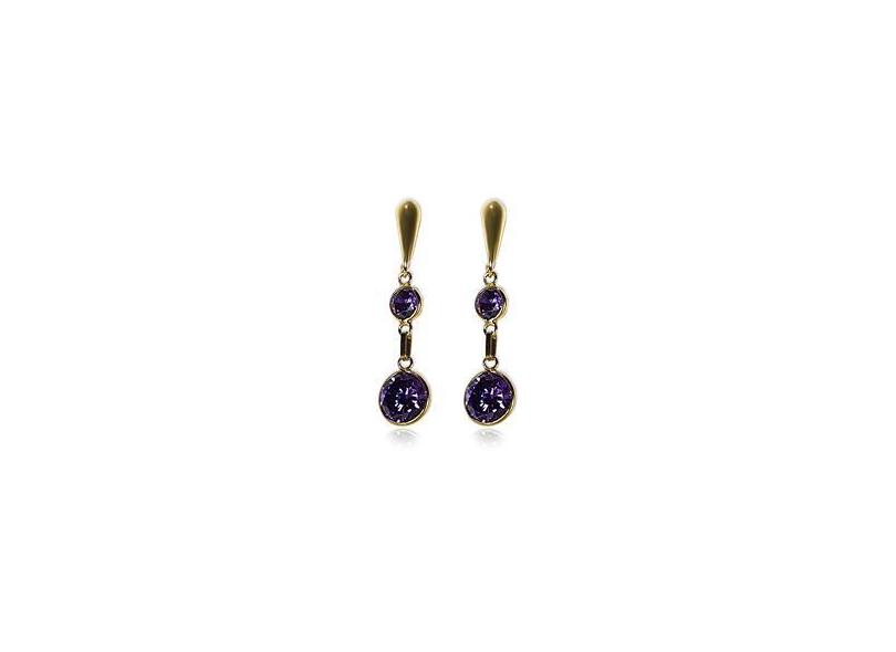 Brinco de Ouro 18k e Pedras em Zircônia Lilás