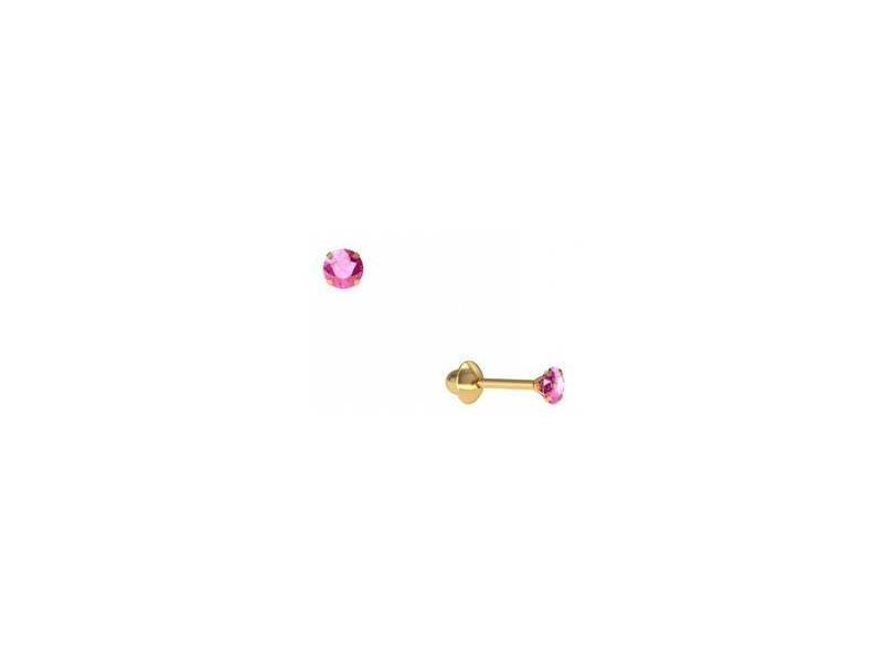 Brinco De Ouro 18k Zirconia Rosa De 3,0mm