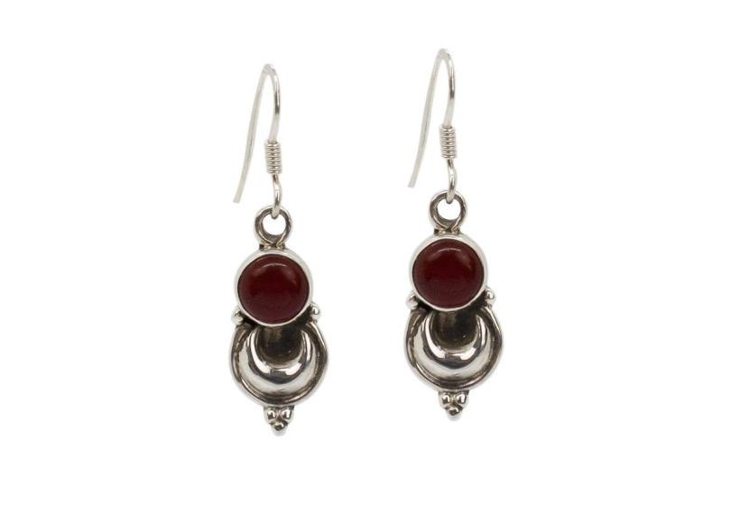 Brinco De Prata 925 Com Pedra Granada - 4468