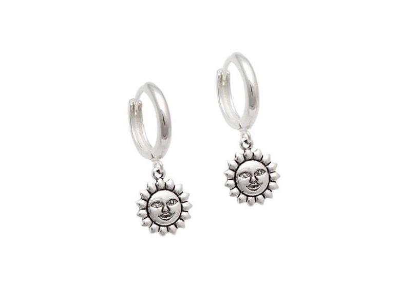 Brinco De Prata Argolinha 12Mm Sol Com Rosto