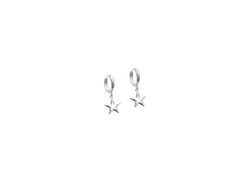 Brinco De Prata Argolinha Com Estrela Diamantada Vazada 10mm