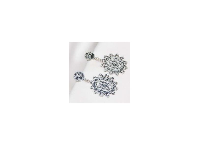 Brinco de Prata Pingente Indiano Envelhecido Redondo Trabalhado