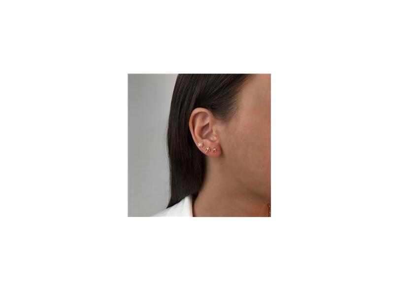 Brinco Dourado Cravejado Zircônia Trio Praia