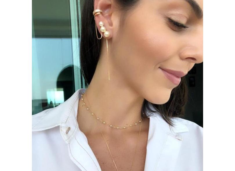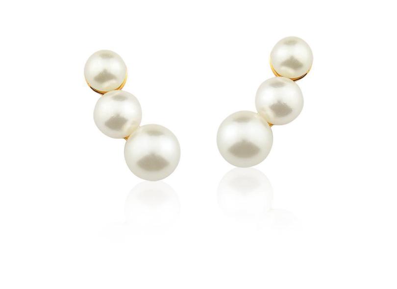 Brinco Earcuff Com Pérolas Folheado Em Ouro