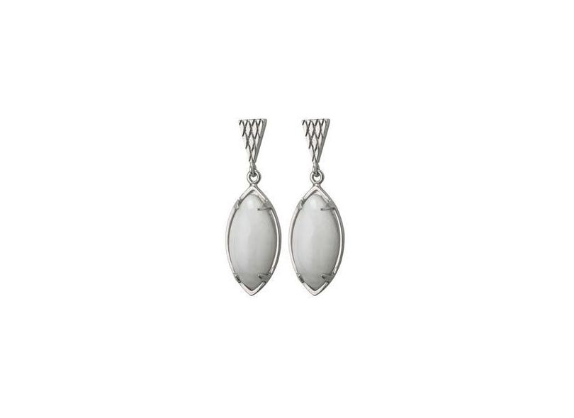Brinco em Aço inoxidável modelo Navete tamanho Médio com Pedra Dolomita Branca | Flecharts