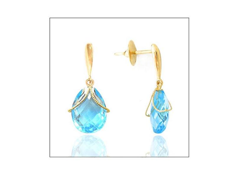 Brinco Em Ouro 18k Gota Topázio Azul Swiss