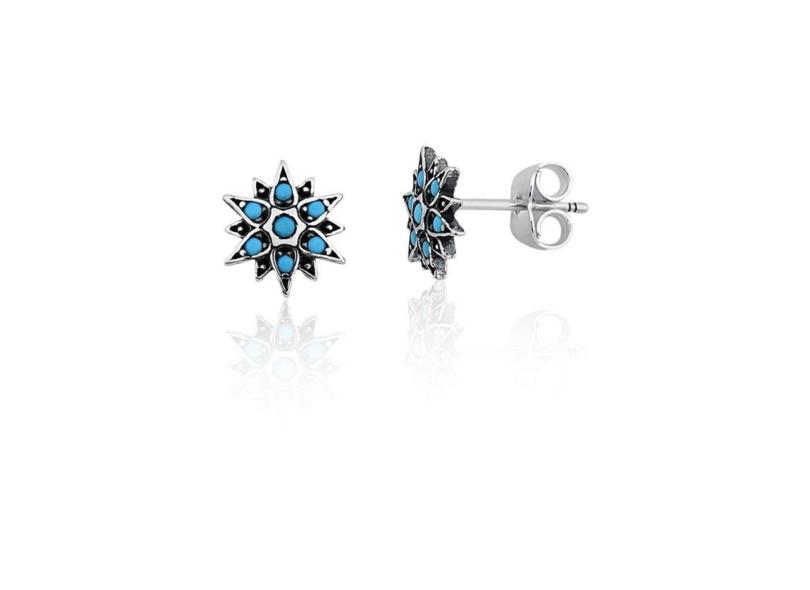 Brinco Estrela 14 Zirconias Azul Turquesa