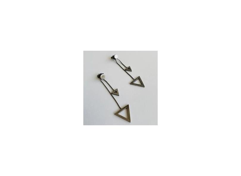 Brinco Feminino de Corrente com Pingente de Triângulos Prata
