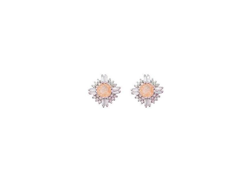 Brinco Flor Retangular De Pedra Imperial No Ródio Branco