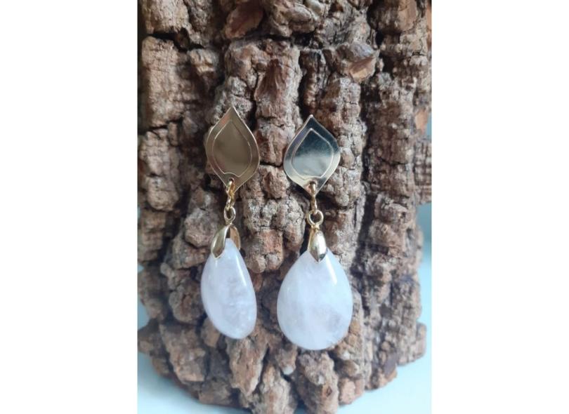 Brinco folheado à ouro com quartzo rosa natural