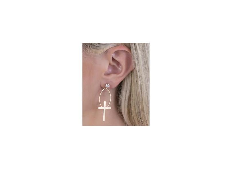 BRINCO FOLHEADO DOURADO COM PEDRA CRISTAL LUCÍ