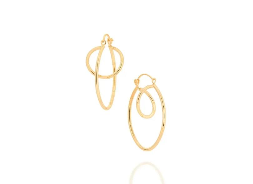Brinco Folheado Rommanel Argola Dupla Oval Formado Por Detalhes Curvado Em Cima - 526601