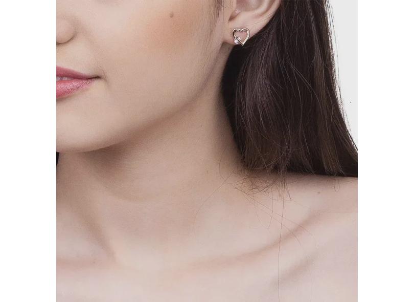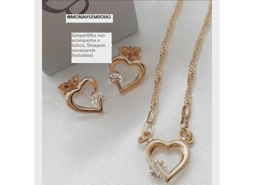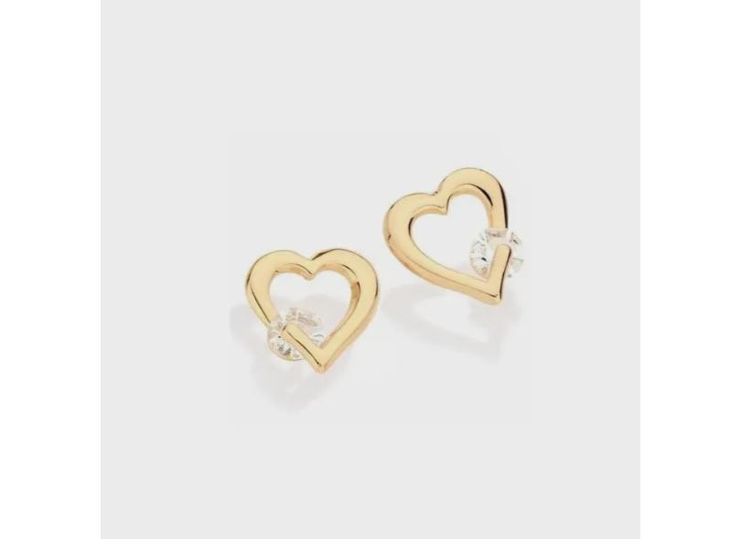Brinco folheado rommanel coraão vazado com cristal ao lado - 524177
