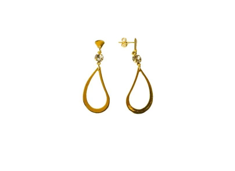 Brinco Gota Médio Folheado A Ouro Com Cristal