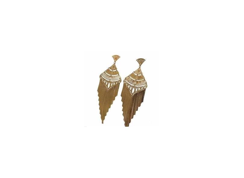 Brinco Grande Com Franja Folheado A Ouro 18k