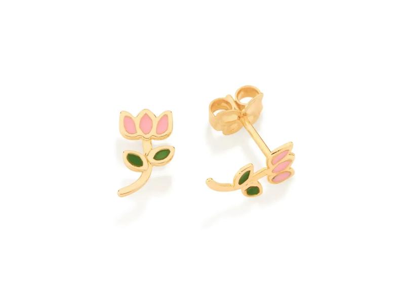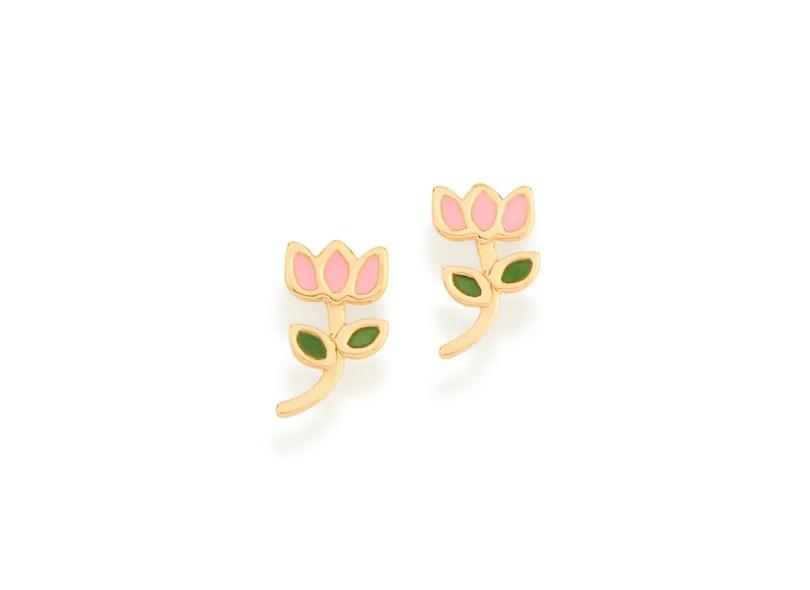 Brinco Infantil Folheado A Ouro Tulipa Com Aplicação De Resina - 526501