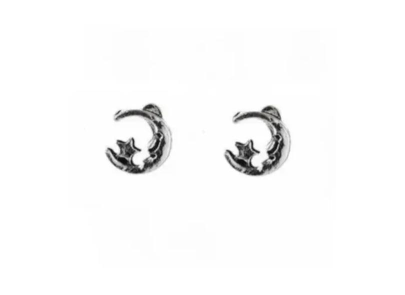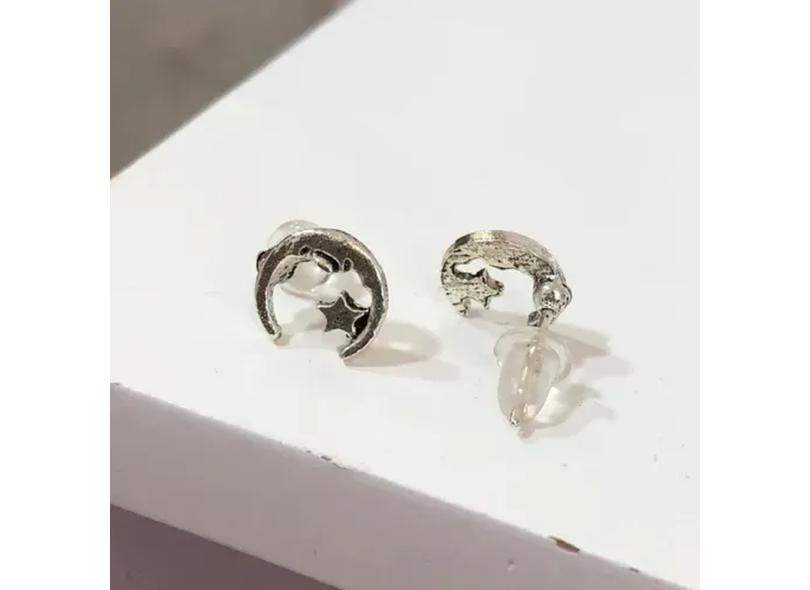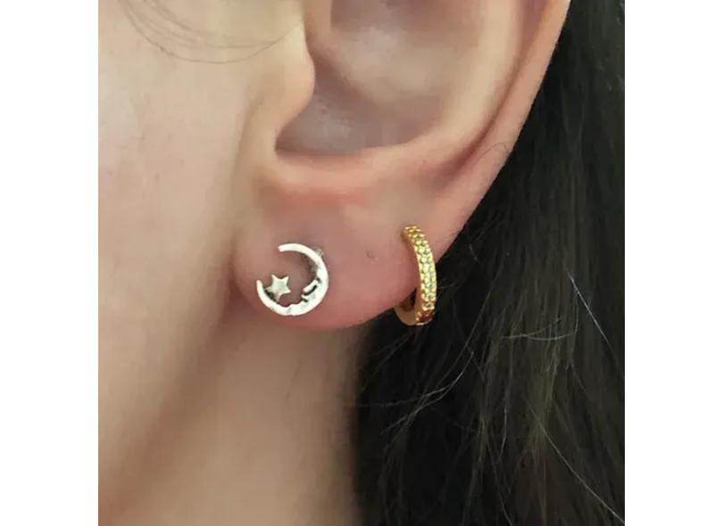 Brinco Lua Estrela Pequena Unissex Boho Prateada Bijuteria