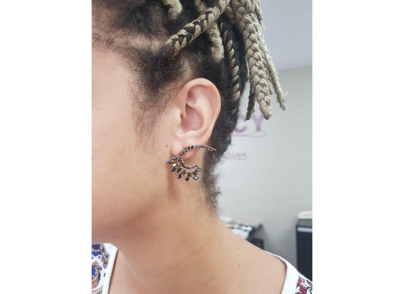 Brinco Luxo Cravejado Com Micro Zircônias Negras Ouro 18K