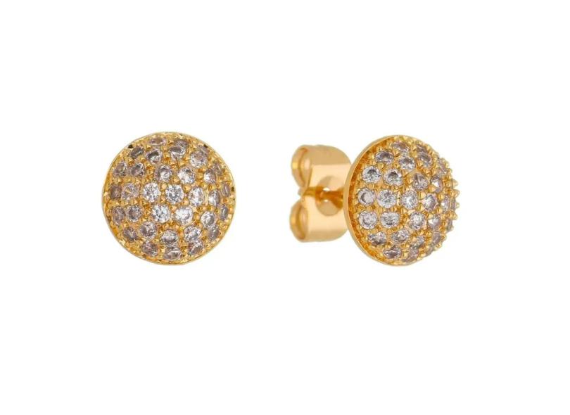 Brinco Meia Bola Cravejado em Zircônias P Folheado em Ouro 18k
