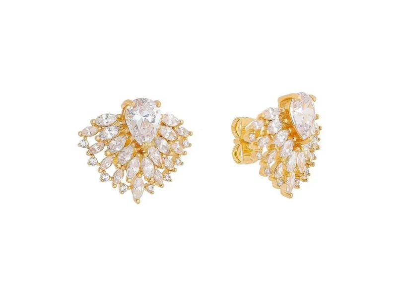 Brinco Navete com Zircônias Folheado em Ouro 18k