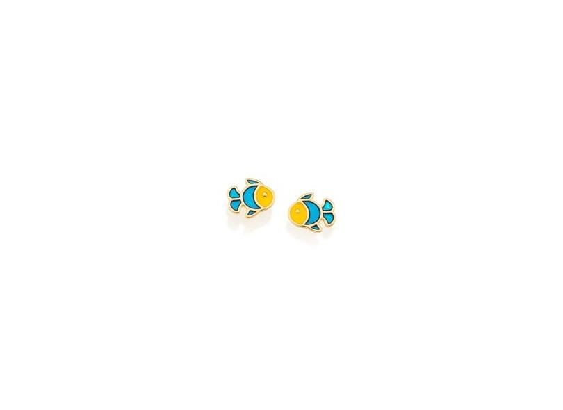 Brinco peixe folheado a ouro com aplicação de resina med. 0,9cm Rommanel