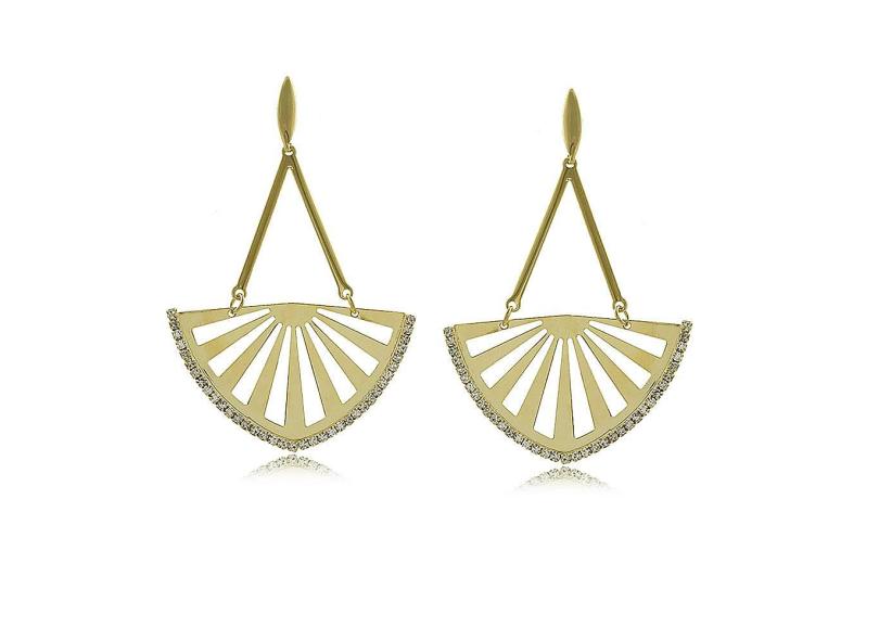 Brinco Pêndulo com Cristais Rendados Folheado a Ouro 18K
