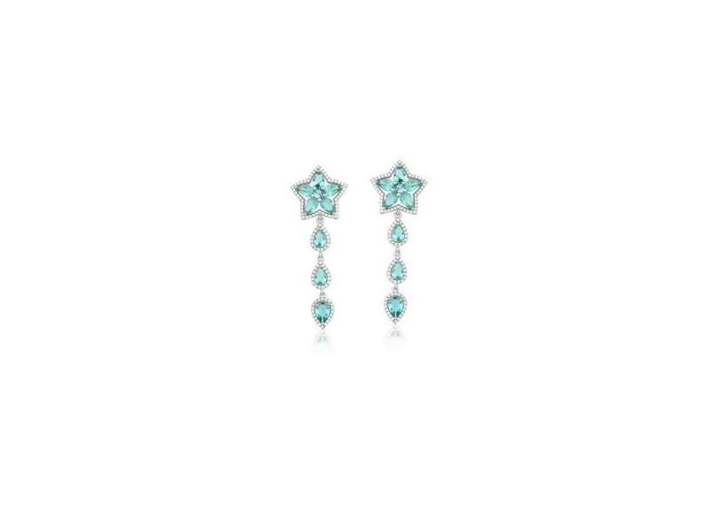 Brinco Pêndulo Flor Com Cristais Turmalina Folheado A Ródi