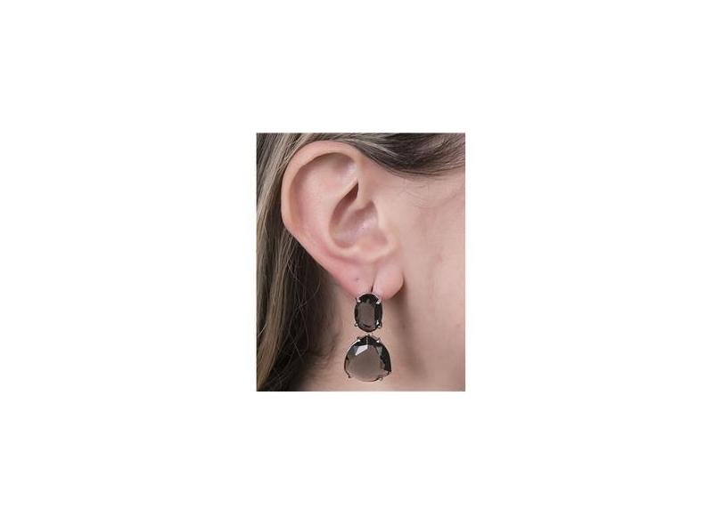 Brinco pequeno de metal prateado com pedra fumê pedrina