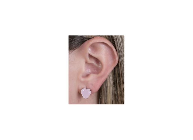 Brinco pequeno de metal prateado com pedra rosa penélope