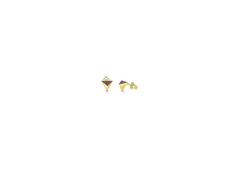 Brinco Pirâmide Cravejado Vermelho em Ouro 18k