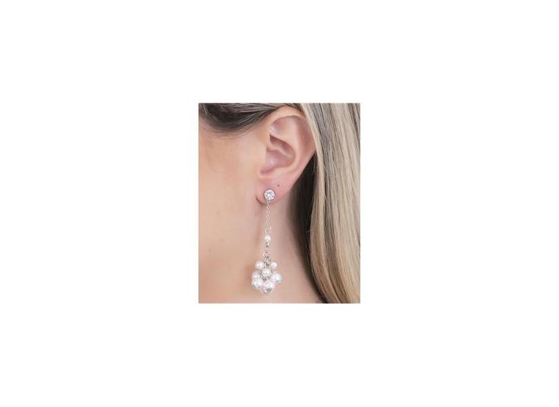 Brinco Prateado Com Pérola E Pedra Cristal Bey