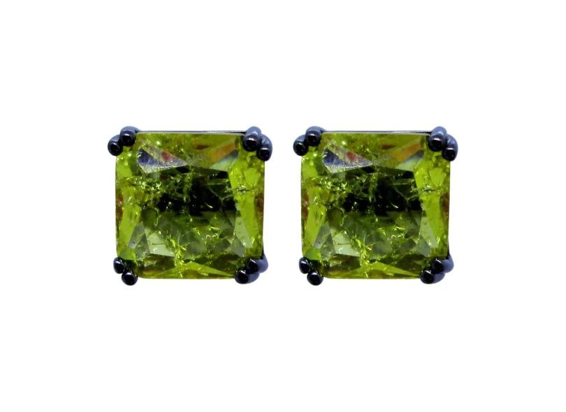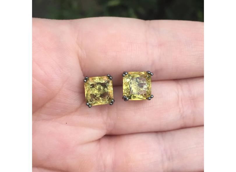 Brinco quadrado cristal amarelo fusion em banho de ródio negro